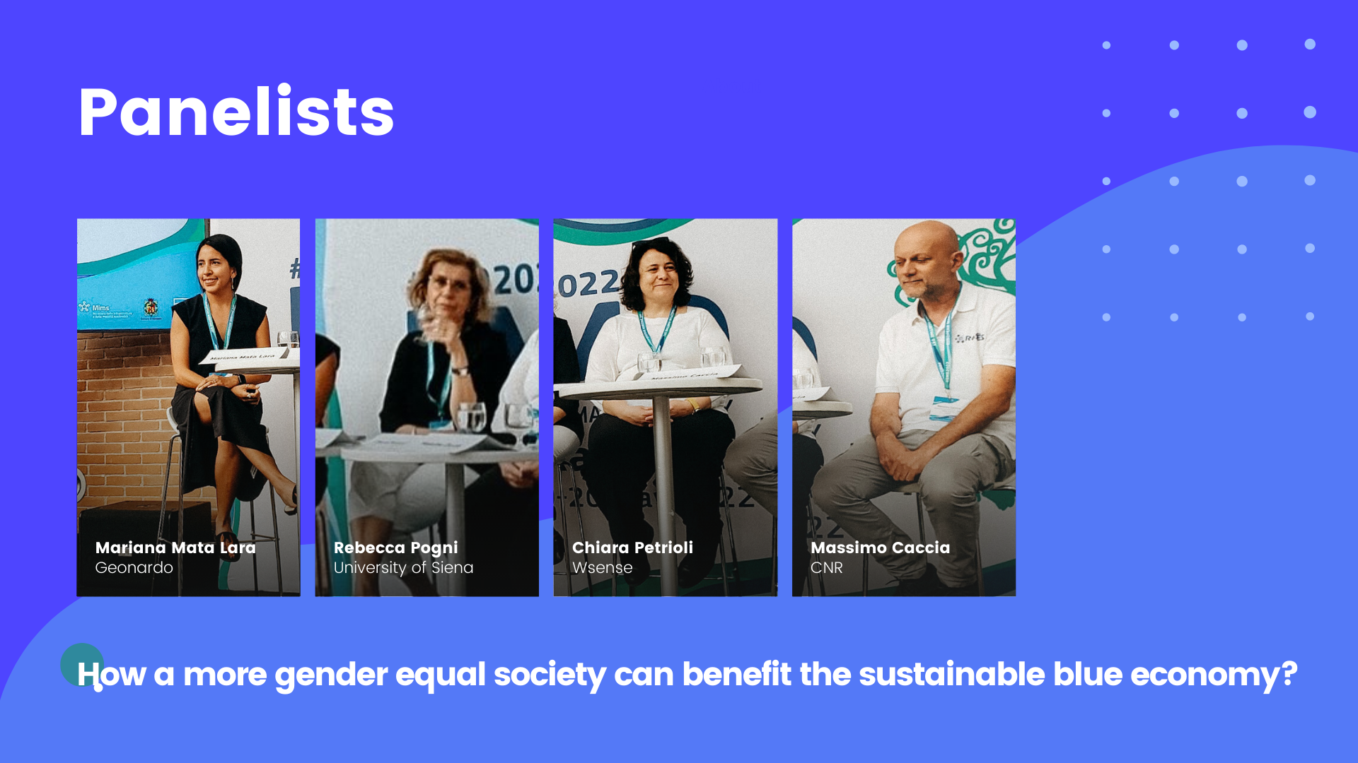 The invited panelists included our coordinator Mariana Mata Lara, representing the face of youth in the Blue Economy sector, Rebecca Pogni, representing the research world, Chiara Petrioli representing the entrepreneur world of Blue Economy and Massimo Caccia representing robotics.