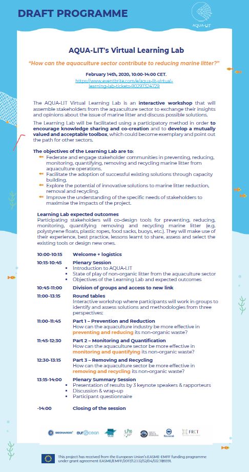 The Learning Lab will have a highly interactive format encouraging participants to exchange their insights and opinions about the issue of litter in aquaculture and discuss possible solutions.
